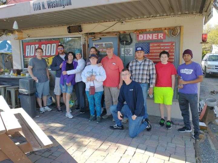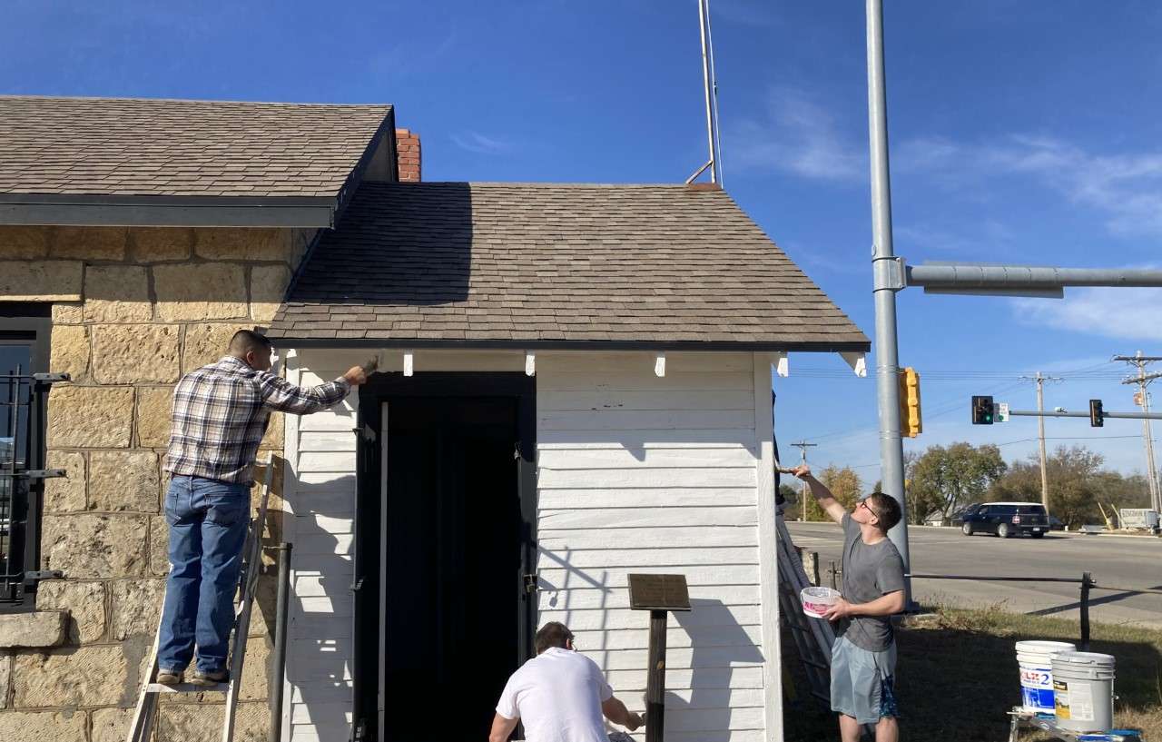 Lunch for the volunteers was provided by Ron Jackson from Hot Rod'z BBQ on Washington St. Supplies for the project were provided by Ace Hardware and Sherwin Williams. The building had previously been scraped by soldiers stationed at Fort Riley.