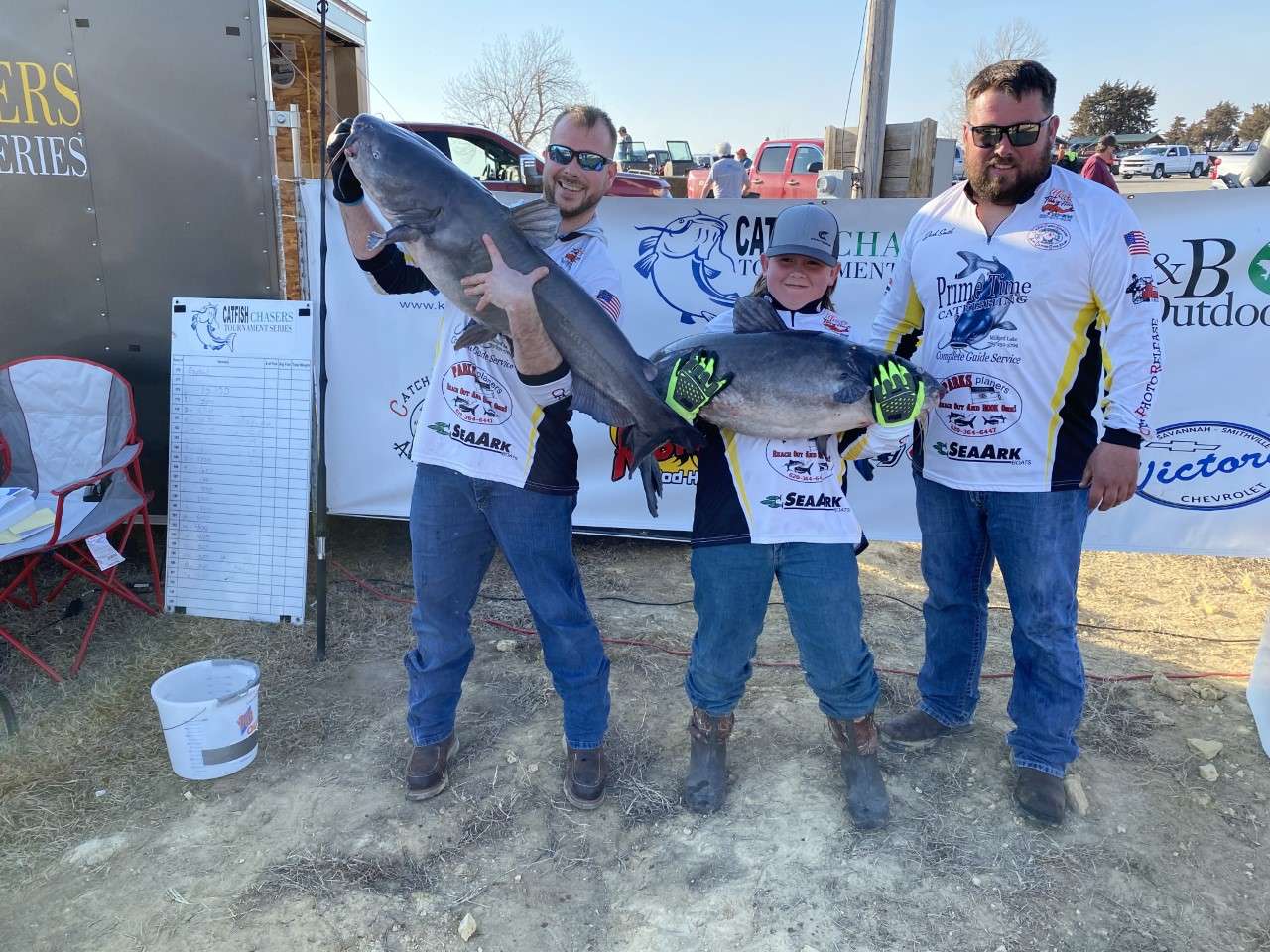 The top overall team included Brandon Kennedy and Josh Smith both of Baldwin City, and Smith's nephew, 11-year Cohen Wittman of Garnett. Their total haul for the tournament weighed 91.95 pounds with 84-pounds of that total coming on two catfish weighing approximately 44 and 40 pounds, that were caught by Cohen. "First one was strip and drag the first time, and then the second one ripped a little bit of drag. Then we finally got him in the boat."