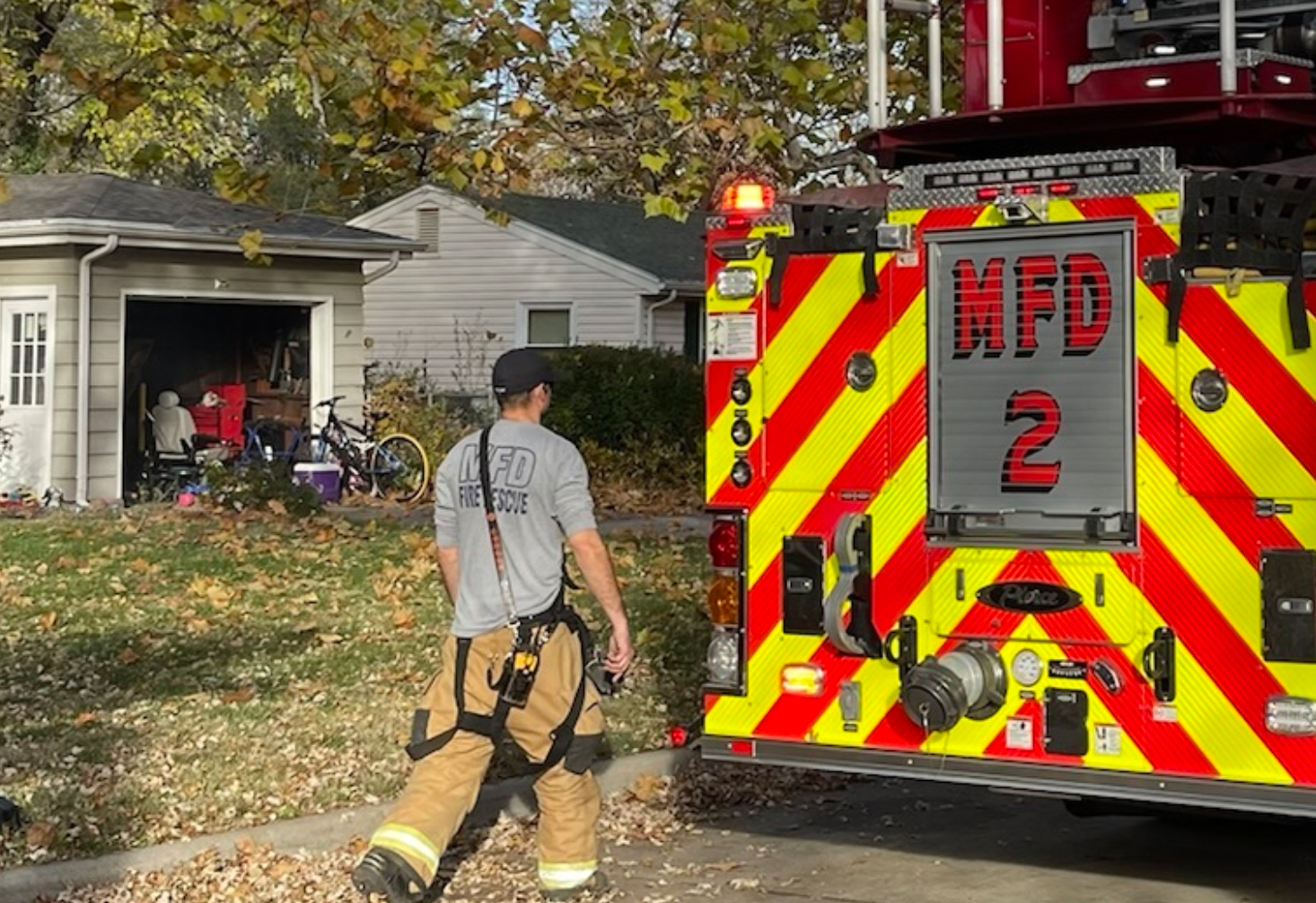 Just before 3:30 p.m., crews were dispatched to 720 Frey Drive for a reported structure fire. Upon arrival, crews found a fire on the back of the attached garage that had been partially extinguished by a Riley County Police Officer, according to Almes.