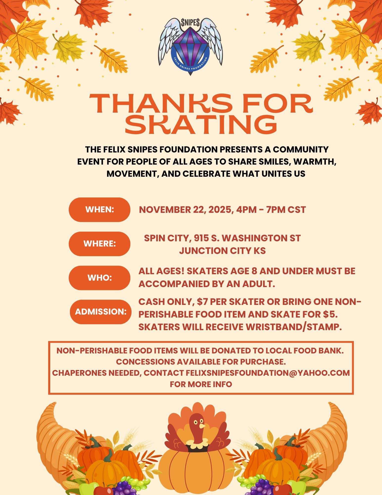 The Felix Snipes Foundation presents a community event for people of all ages to share smiles, warmth, movement, and to celebrate what unites us on Saturday, November 22, 2025, from 4:00 p.m. to 7:00 p.m. (CST).