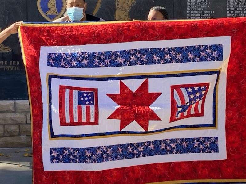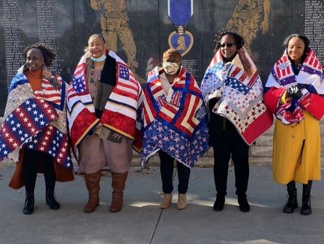 Mahogany Thread Quilters, Local African American quilting group, made quilts and presented them at Heritage Park in Junction City on Nov 11 to Veterans. The quilt group founder, Jacqueline Corbett, and members, work closely with Donna Martinson, Flint Hills QOV program and the American Legion Post #45 to make and present quilts to Veterans in the community.