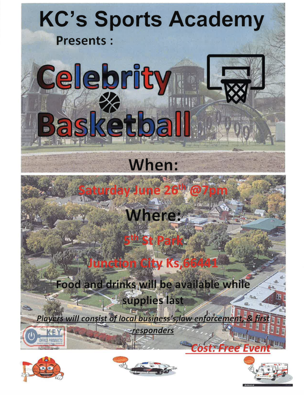 JUNCTION CITY, Kan. — KC's Sports academy will host a celebrity basketball game in 5th Street Park in Junction City this Saturday, June 26th at 7p.m..
